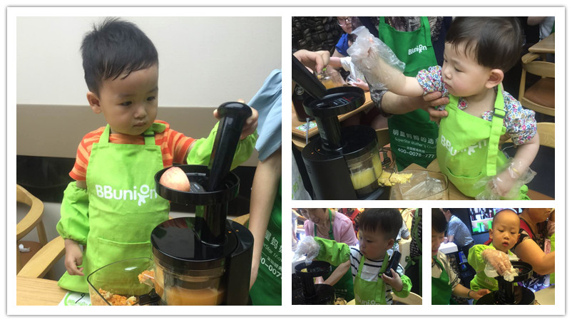 宝贝们都迫不及待自己动起手来榨果汁了